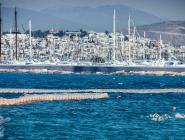 Στη γραμμή εκκίνησης βρέθηκαν 202 αθλητές έτοιμοι να κολυμπήσουν αντίθετα με τον κυμματισμό της θάλασσας και 2084 θεατές να βρίσκονται στην ακτή να τους εμψυχώνουν.